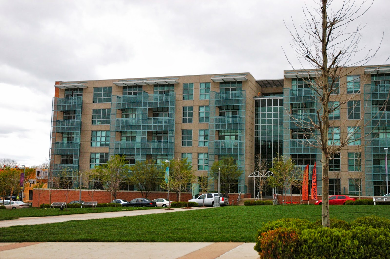The site is not a typical neighborhood setting like you can get in most parts of town, it is part of the larger Highlands office park that exists on the spot of the former St. Louis Arena. There are a couple residential buildings called "The Lofts", a hotel and restaurant, a building housing BJC operations and two other buildings with various tennants including financial, media and construction firms, etc. A Jimmy Johns, Yoga studio and
