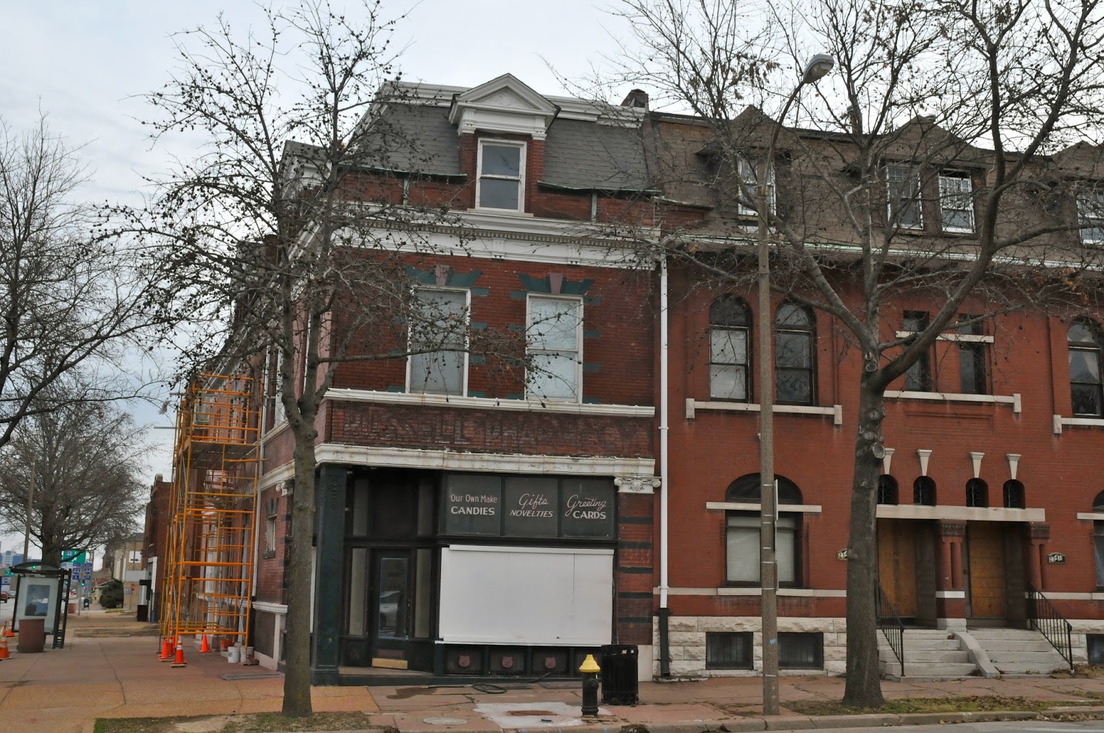 This building which opened in 1928 used to house a German cultural center called Das Deutsche Haus, the building later was home to the St. Louis Symphony Orchestra in the 1950's and eventually carried the St. Louis House name and was home to two Christian schools before it was boarded up for the last 10 years or so (source).
